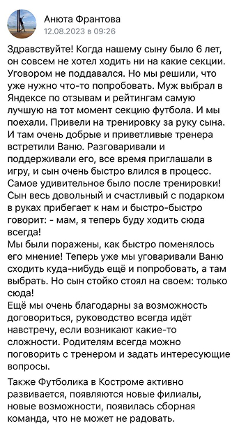 Мы стремимся, чтобы каждый ребенок мог начать свой футбольный путь в любом возрасте, а наши воспитанники могли продолжить карьеру в своей школе с близкими ценностями.